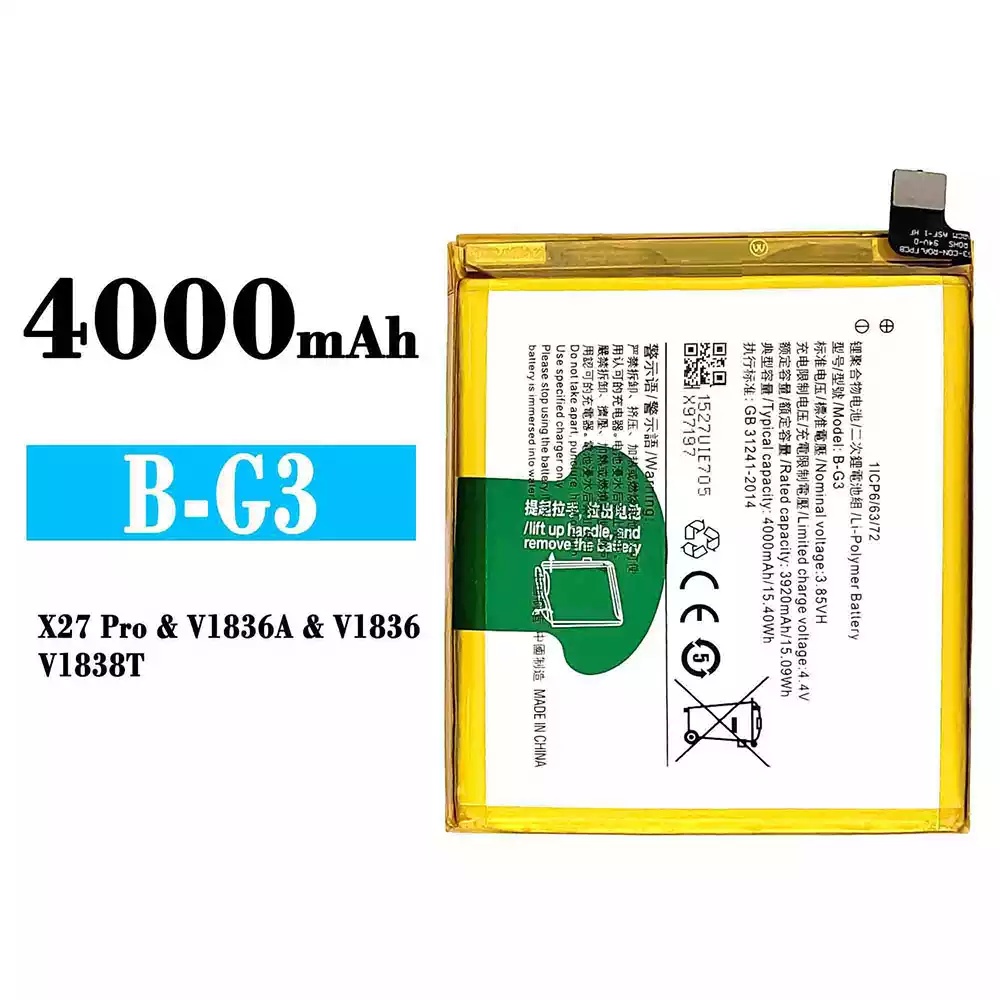 Bateria B-G3 para VIVO X27 Pro/V1836/V1836A/V1838T