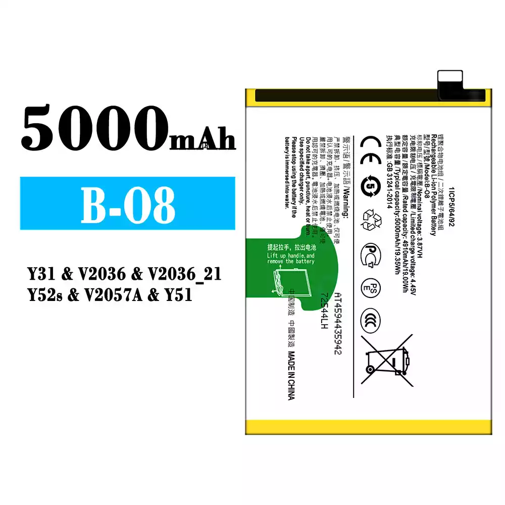 Bateria B-O8 para VIVO Y31/Y52s/Y51/V2036/V2036_21/V2057A