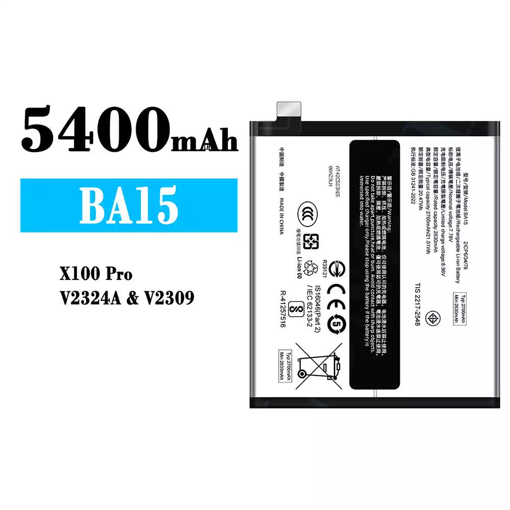 Bateria BA15 para VIVO X100 Pro/V2324A/V2309