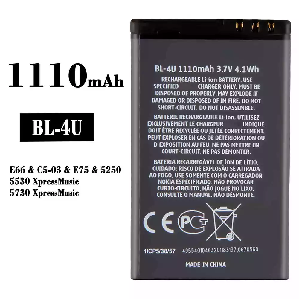 Bateria BL-4U para Nokia E66 / C5-03 / E75 / 5250 / 5530 XpressMusic / 5730 XpressMusic
