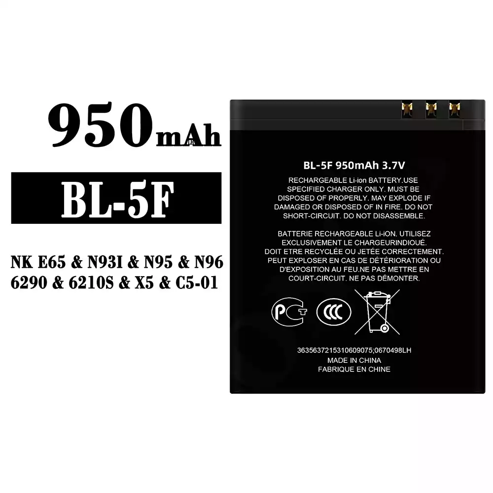 Bateria BL-5F para Nokia NK E65 / N93I / N95 / N96 / 6290 / 6210S / X5 / C5-01