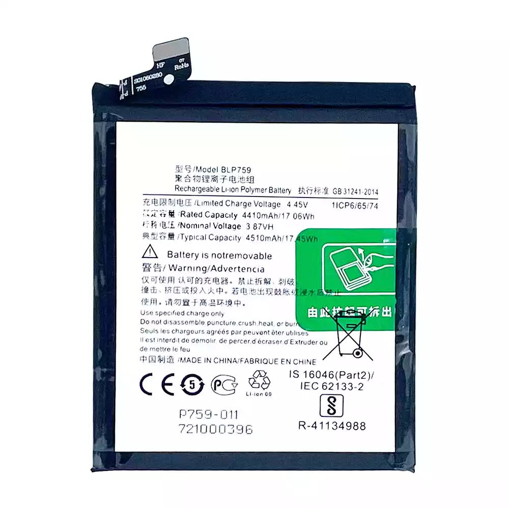 Bateria BLP759 para OPPO 1+8Pro