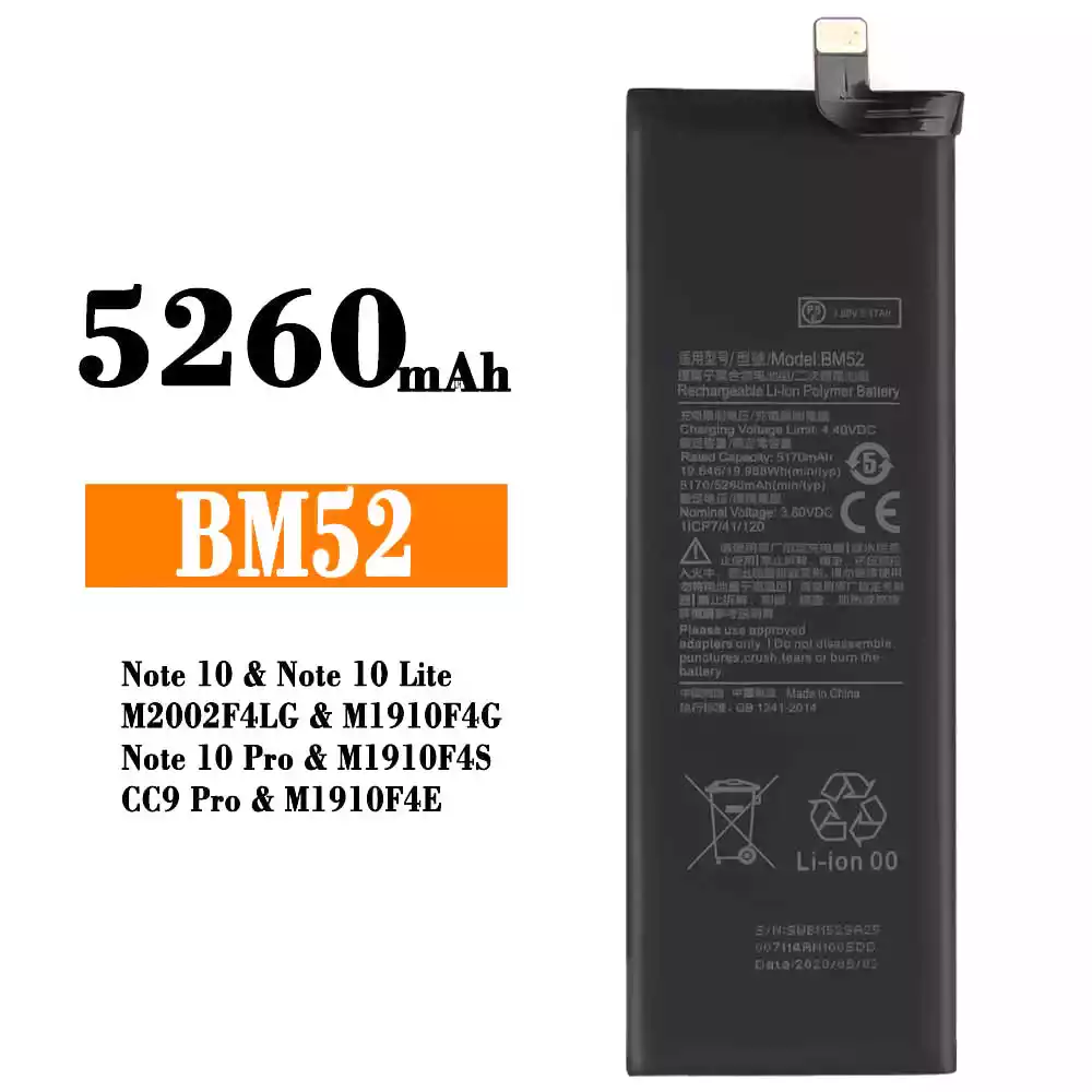 Bateria BM52 para Xiaomi Note 10 / Note 10 Lite / M2002F4LG / M1910F4G / Note 10 Pro / M1910F4S / CC9 Pro / M1910F4E
