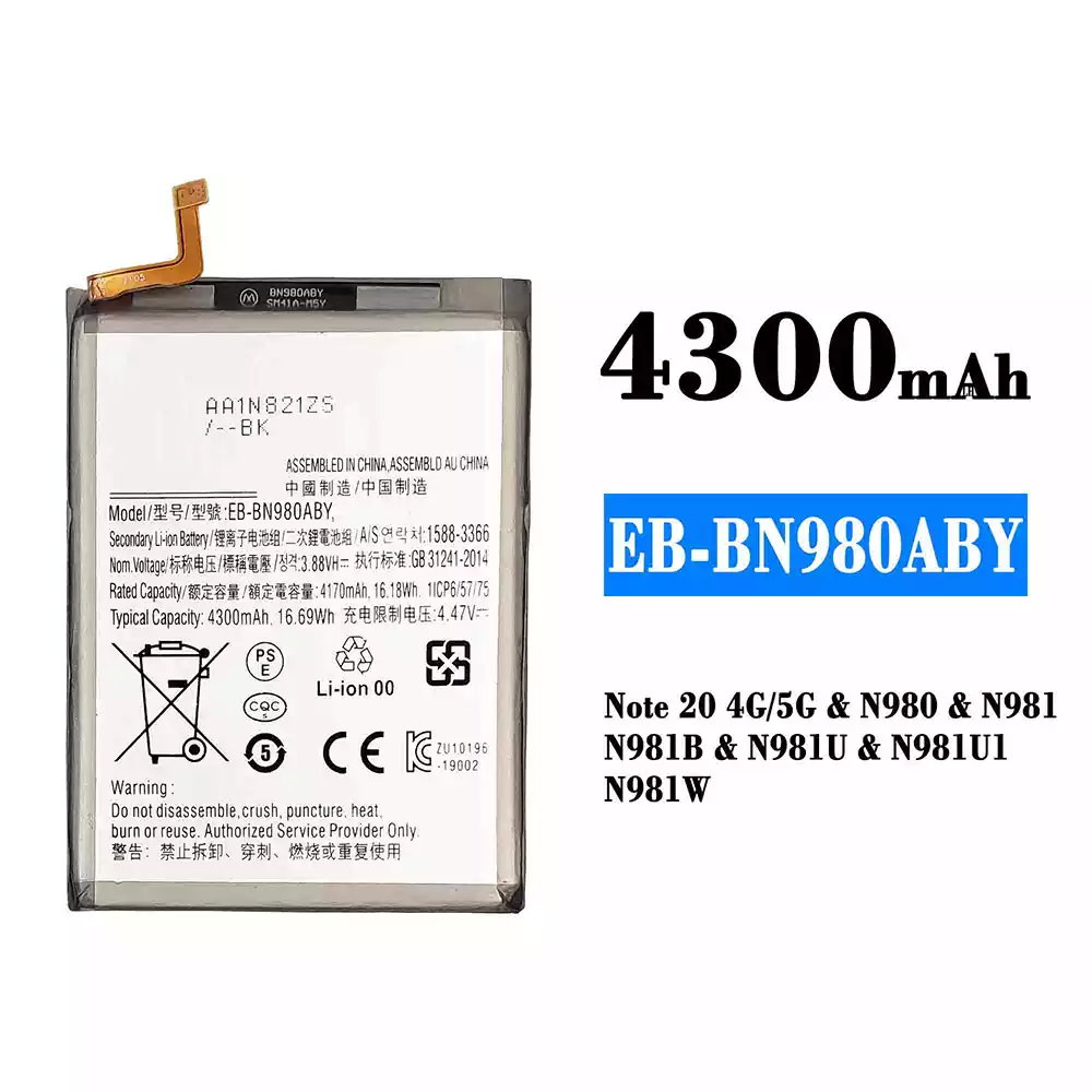 Bateria EB-BN980ABY para Samsung Note 20 4G/Note 20 5G/N980/N981/N981B/N981U/N981U1/N981W