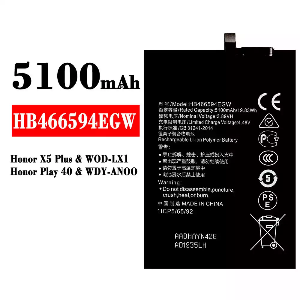 Bateria HB466594EGW para HUAWEI Honor X5 Plus / WOD-LX1 / Honor Play 40 / WDY-ANOO