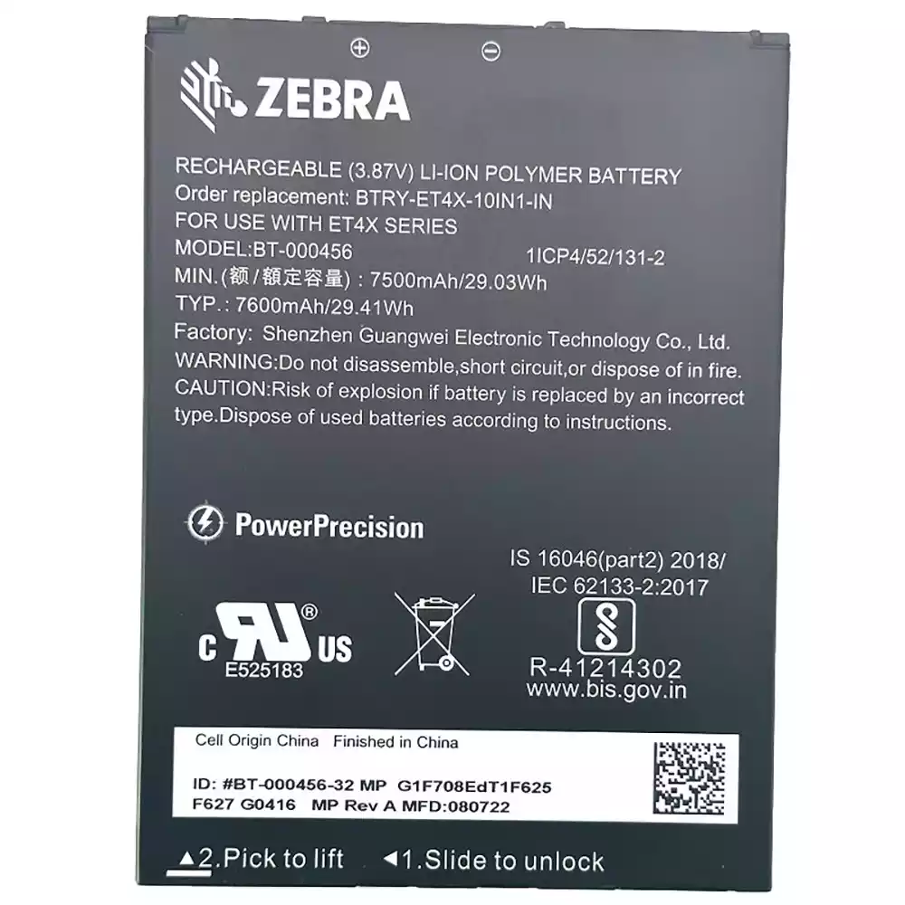 Bateria para ZEBRA BTRY-ET4X-10IN1-IN BT-000456