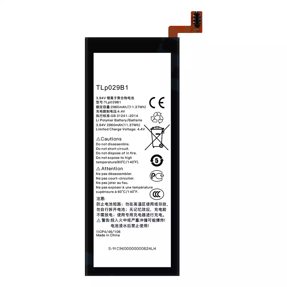 Bateria TLP029B1 para Alcatel Pop 4S/5095Y/5095L/5095B/5095I/5095K